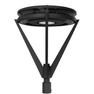 Luminaria tipo punta de poste con un diseño moderno, fabricada en aluminio, integrado por módulo LED marca CREE con óptica integrada y driver electrónico programable marca Philips. Posibilidad de elegir óptica asimétrica o simétrica.