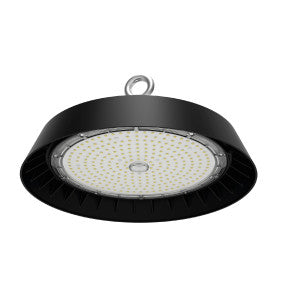 Luminaria tipo highbay para suspender, fabricada en aluminio, integrado por módulo LED alto flujo y driver electrónico. Ideal para espacios industriales, comerciales y deportivos.