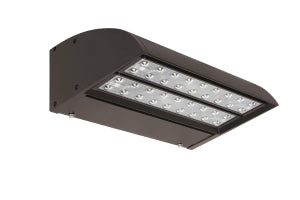Luminaria tipo wallpack, fabricada en aluminio, integrado por módulos LED marca NICHIA, ópticas independientes y driver electrónico Inventronics.