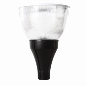 Luminaria tipo punta de poste tecnología LED. Cuerpo de aluminio puro inyectado a presión, recubierta con pintura tipo poliéster aplicada electrostáticamente lo que le brinda mayor resistencia a la corrosión. Refractor de acrílico con prismas. Reflector en forma de tapa de lámina de aluminio anodizado.