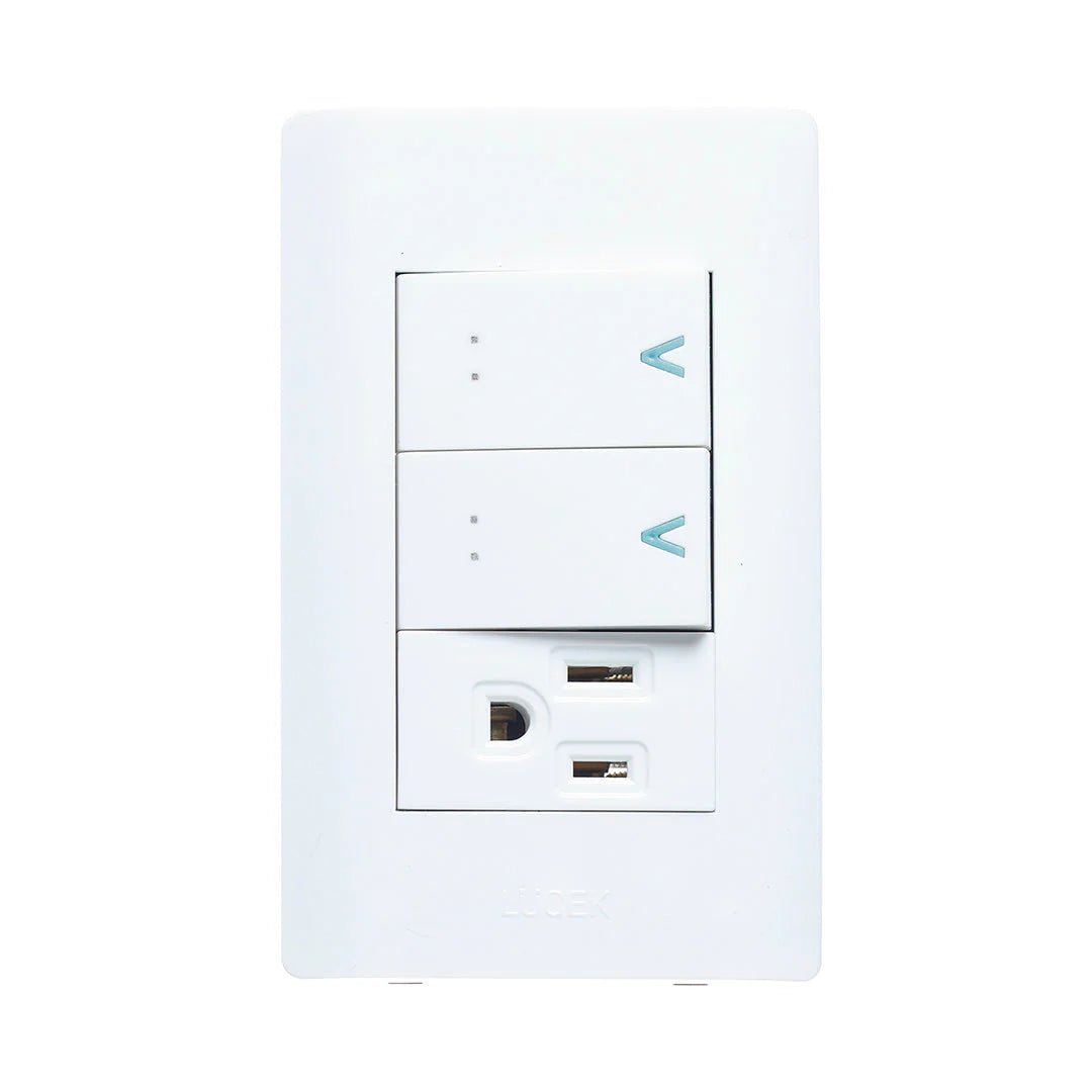 PLACA CON 2 INTERRUPTORES ESCALERA Y 1 CONTACTO DE 1 MÓDULO.