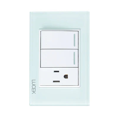 PLACA CON 2 INTERRUPTORES ESCALERA Y 1 CONTACTO DE 1 MÓDULO