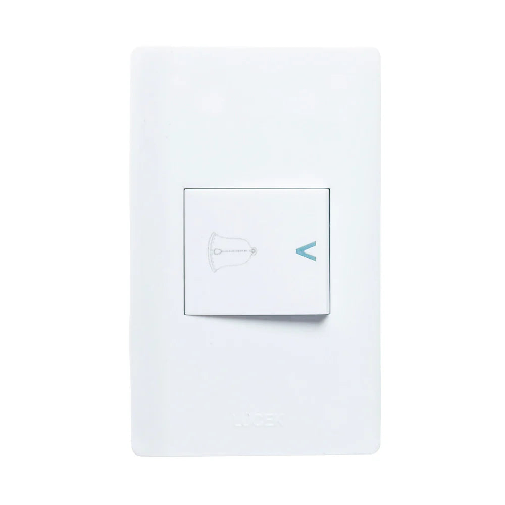 Placa de 1.5 módulos blanca con un botón timbre de 1.5 módulos. Muy económica y fácil de instalar. Tecla mas ancha. 60hz 10a 127v.
