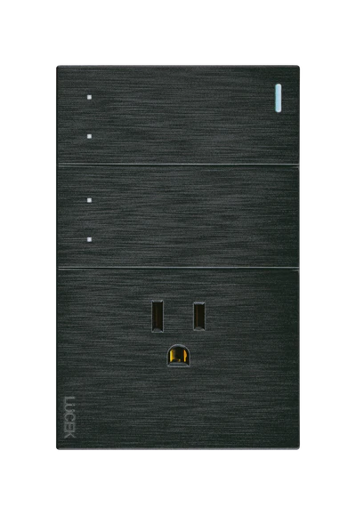PLACA PLANA CON 2 INTERRUPTORES DE ESCALERA Y 1 CONTACTO DE 1 MÓDULO FLAT