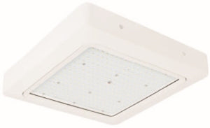 Luminaria para sobreponer, fabricada en aluminio, integrado por módulo LED marca NICHIA y driver electrónico Inventronics. Ideal para estaciones de gasolina.